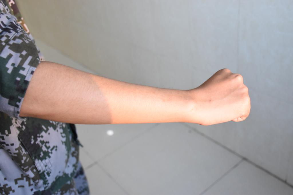 看着镜子里的自己 嘿嘿 有硬汉那味了