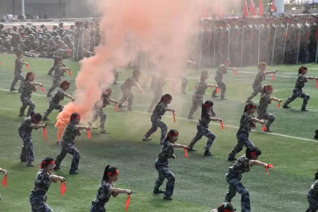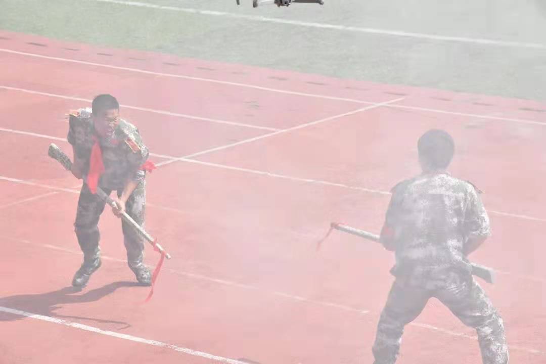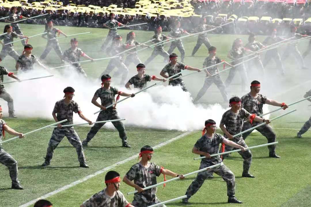 随后,表演方队进行了匕首术、应急棍、党史军史团体操等一系列精彩的展示,军训生们身姿飒爽地完成了每一个动作,以饱满的精神状态向领导们汇报军训成果。