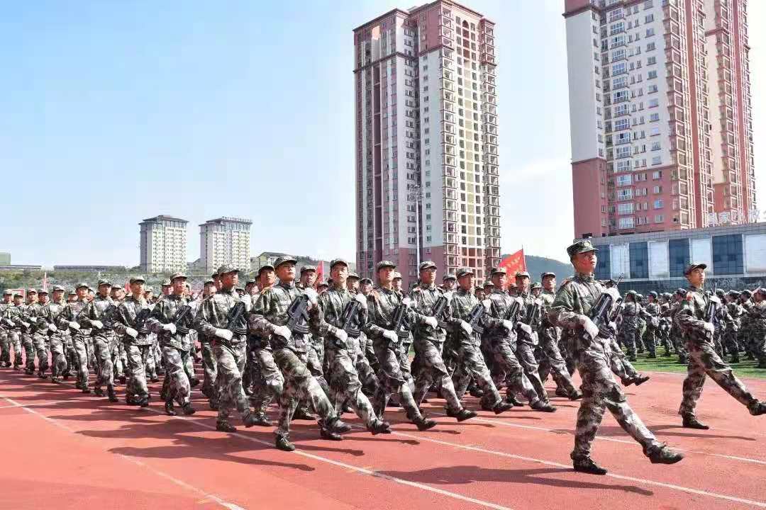 9月30日上午,k1体育2021级本科新生军训汇报表演暨总结表彰大会在花溪二号足球场举行。