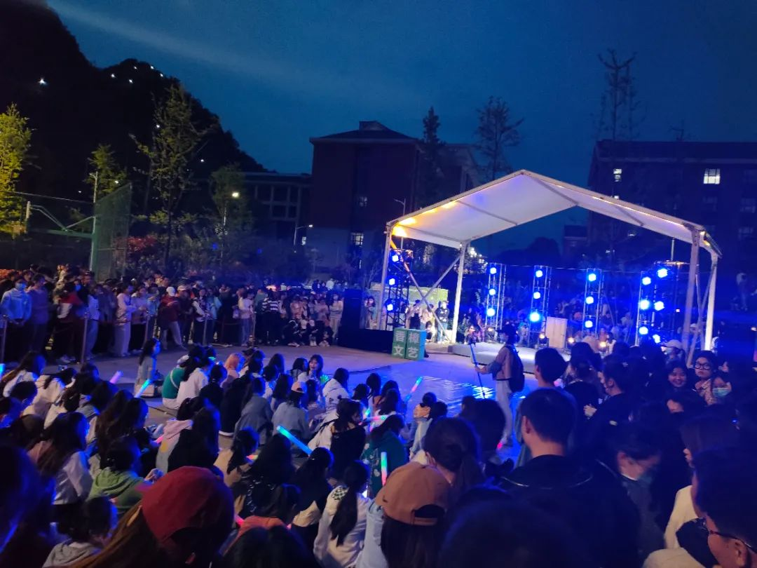 校老员工艺术团歌手器乐队现场音乐演奏,老员工艺术团成员和校园十大歌手演唱流行、经典且富有正能量的歌曲。现场观众可自愿上台参与歌曲演唱。
