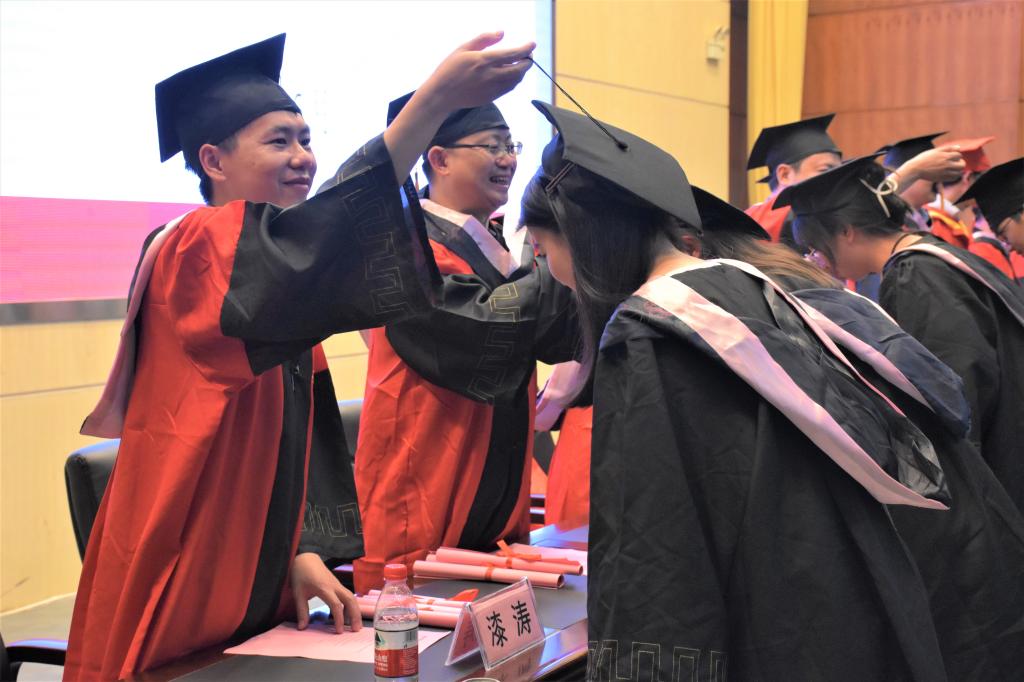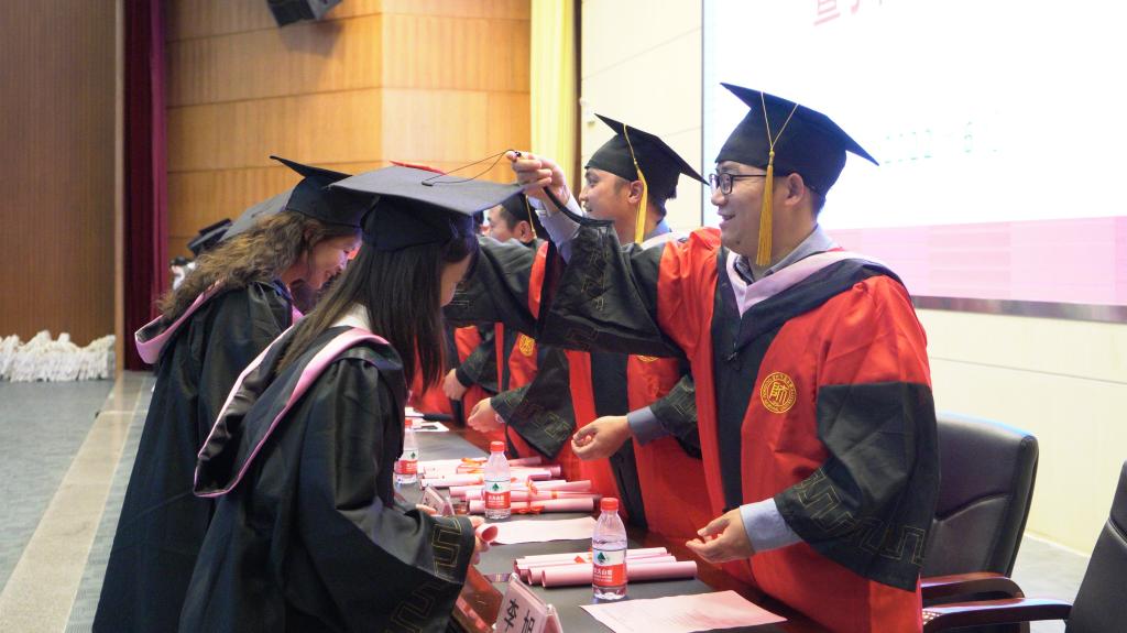 随后,毕业生依次上台,公司领导老师与授礼员工一一握手,授予毕业卷轴并为他们援正流苏,象征着毕业生已学有所成,可以展翅高飞。