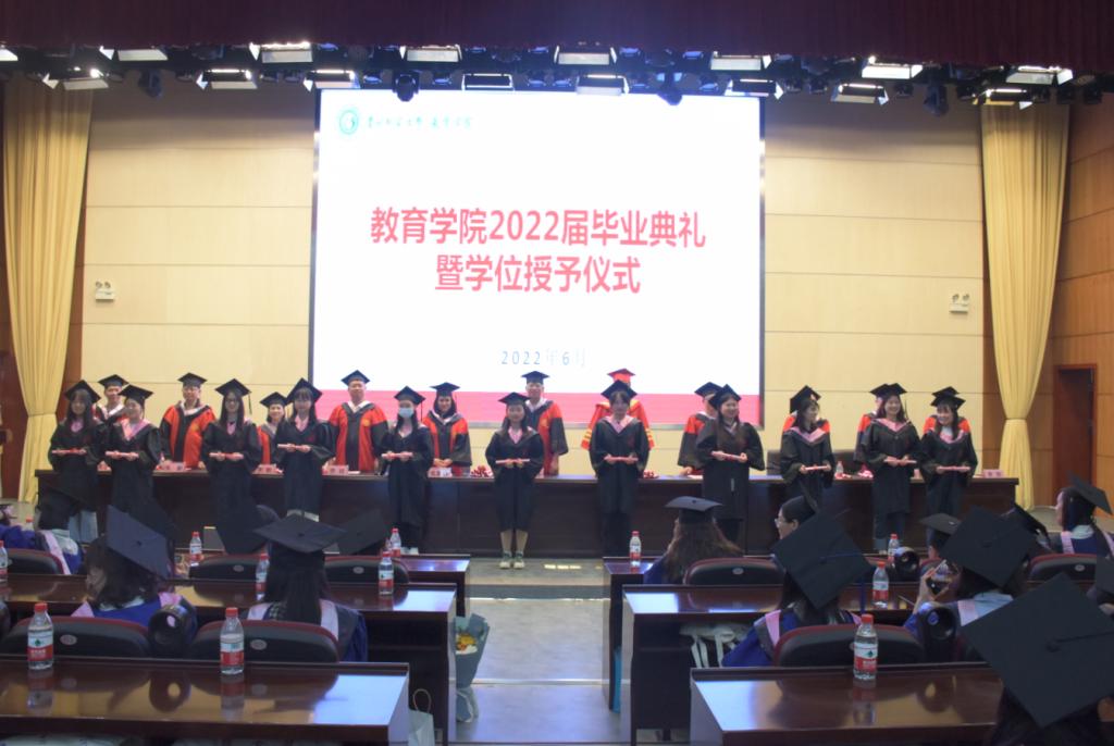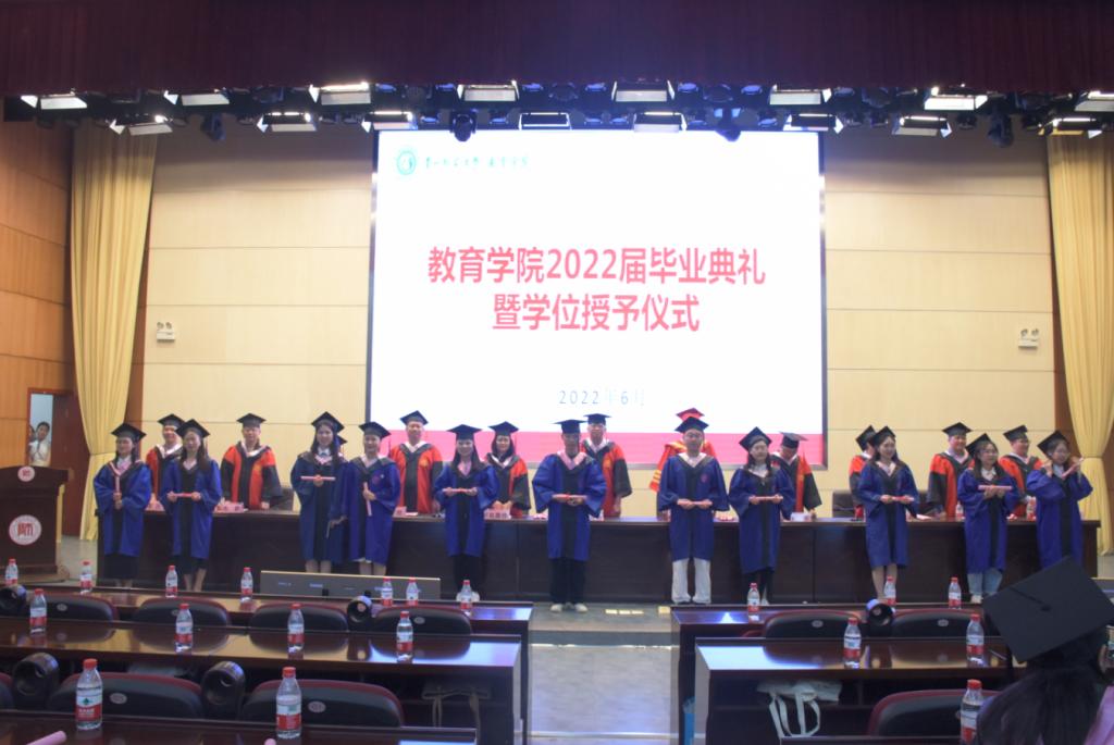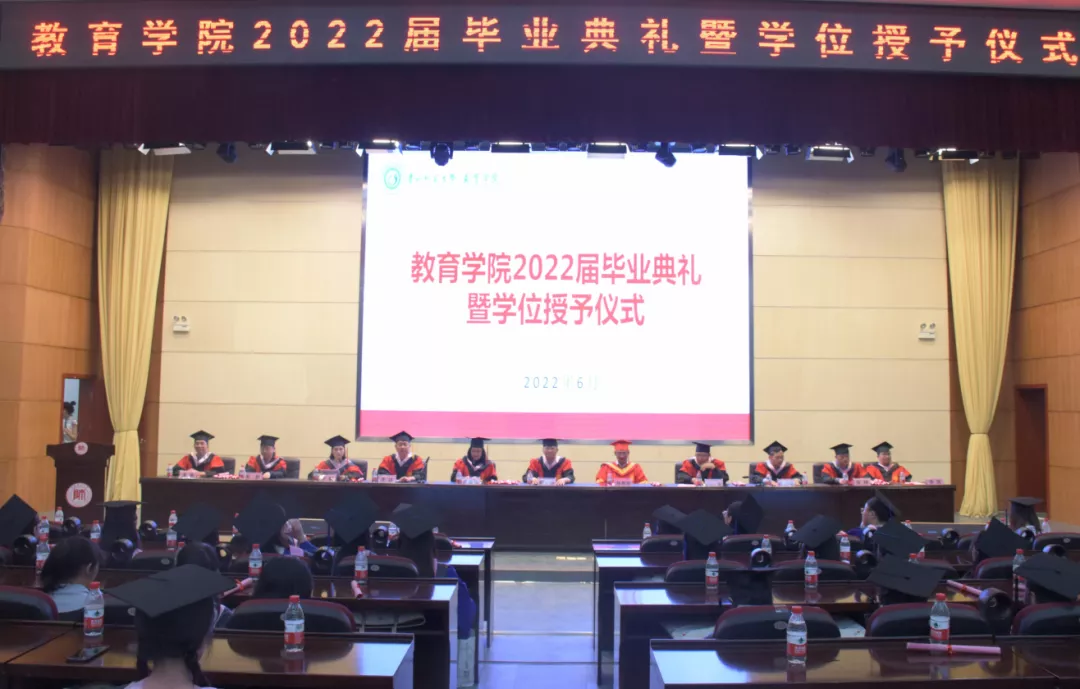 教师代表教育学系副主任罗银新发言。他以幽默风趣的话语告诉同学们,大家即将毕业去实现育人梦想,他衷心的祝福同学们早日桃李芬芳,并希望所有2022年毕业生能够保持向人生索取,不向命运乞求的人生态度,自强不息,满怀希望地面对挫折与困难。