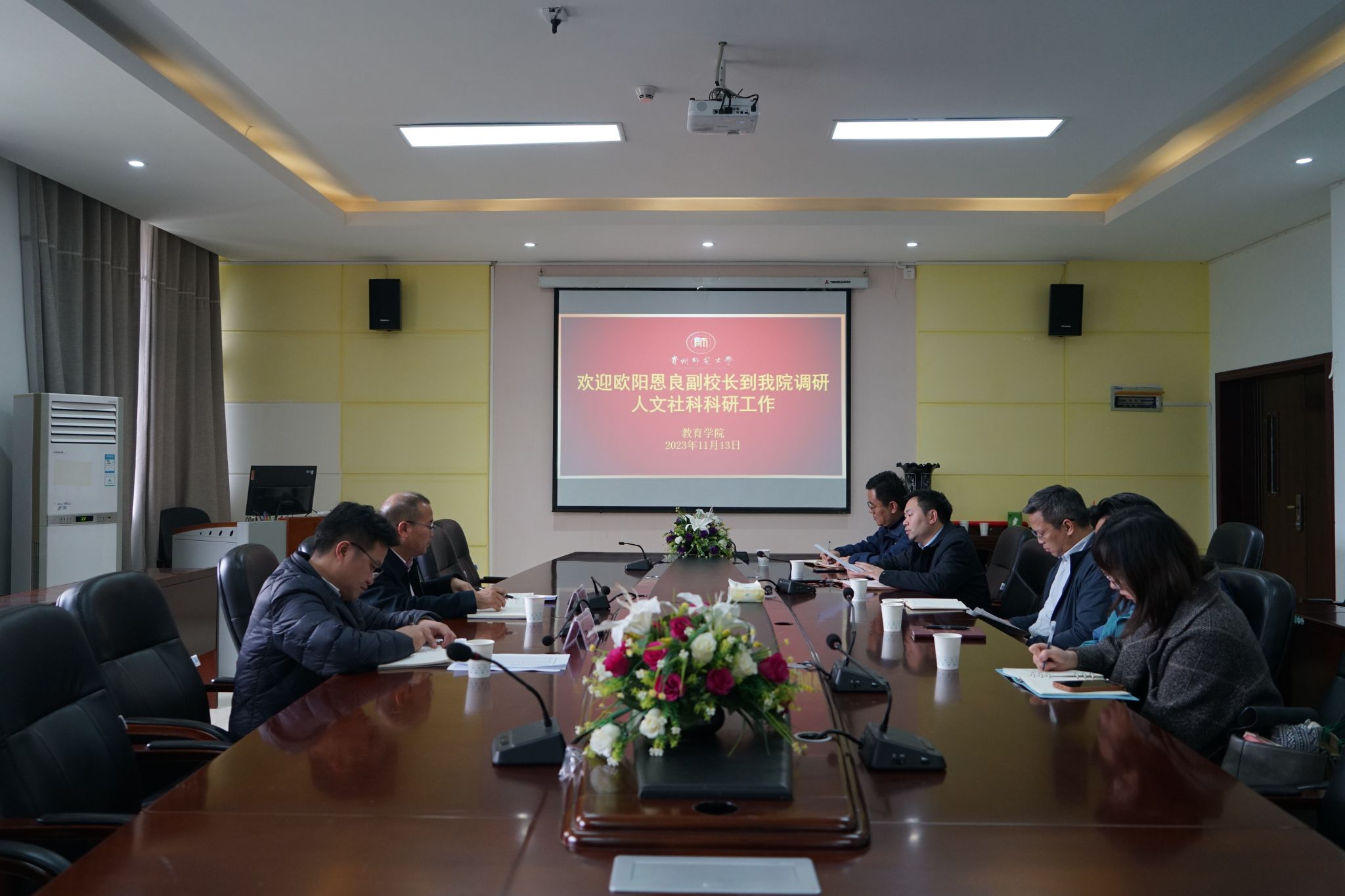11月13日中午,副董事长欧阳恩良到k1体育开展人文社科科研专题调研。教育公司党委书记胡长华,经理任胜洪,副经理杜尚荣,以及漆涛、张义民、郑星媛、吴卫等教师代表参加。